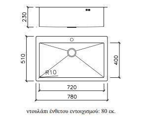 - Εσωτερικά η γούρνα έχει μικρή καμπύλη R10 για ευκολότερο καθαρισμό