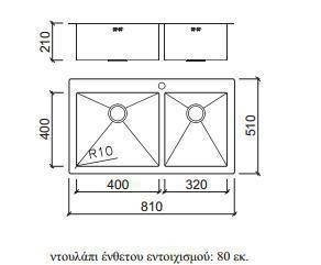 - Νεροχύτης από Ανοξείδωτο Χάλυβα (18/10) πάχους 1.2mm