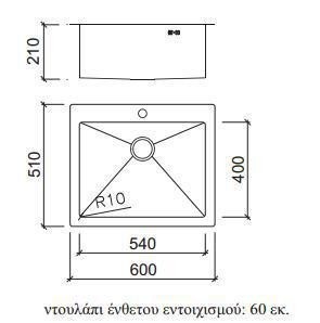 - Εσωτερικά η γούρνα έχει μικρή καμπύλη R10 για ευκολότερο καθαρισμό