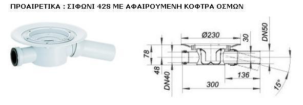 - Προαιρετικά μπορείτε να χρησιμοποιήσετε και το σιφώνι 42S με την αποσπώμενη κόφτρα οσμών με τιμή 39,00 euro