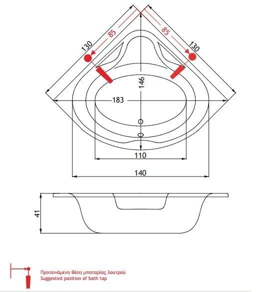 - Μπανιέρα ακρυλική γωνιακή 130X130 cm