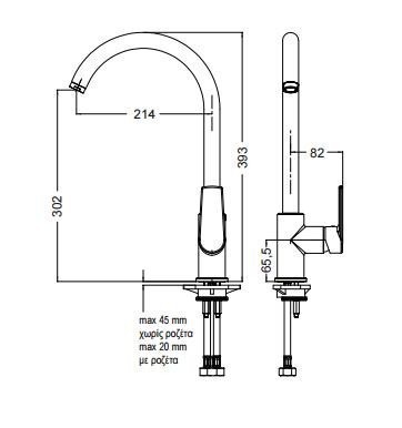 •  Συνολικό ύψος από τον πάγκο : 39,3 cm