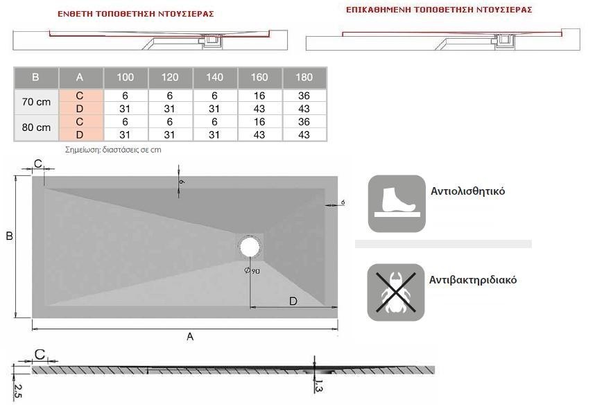 • Η επιφάνεια της ντουσιέρας είναι επιστρωμένη με gel coat και προσδίδει στην ντουσιέρα αντοχή και ομορφιά