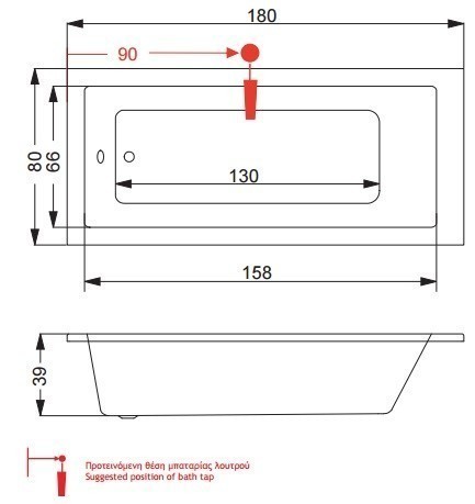 - Μπανιέρα Cubic 180x80 cm με σύστημα υδρομασάζ το οποίο αποτελείται από : Κινητήρα-αντλία 0,88HP 6 Jet / Πνευματικό χειριστήριο on/off / Αισθητήρα στάθμης / Ολικό μεταλλικό πλαίσιο στήριξης