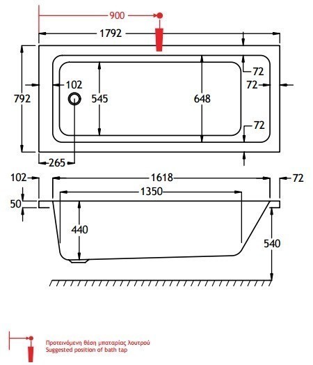 - Διατήρηση θερμοκρασίας του νερού για 30' περισσότερο από ό,τι μια τυπική ακρυλική μπανιέρα