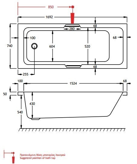 - Διατήρηση θερμοκρασίας του νερού για 30' περισσότερο από ό,τι μια τυπική ακρυλική μπανιέρα