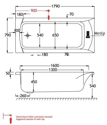 - Διατήρηση θερμοκρασίας του νερού για 30' περισσότερο από ό,τι μια τυπική ακρυλική μπανιέρα