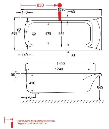 - Διατήρηση θερμοκρασίας του νερού για 30' περισσότερο από ό,τι μια τυπική ακρυλική μπανιέρα