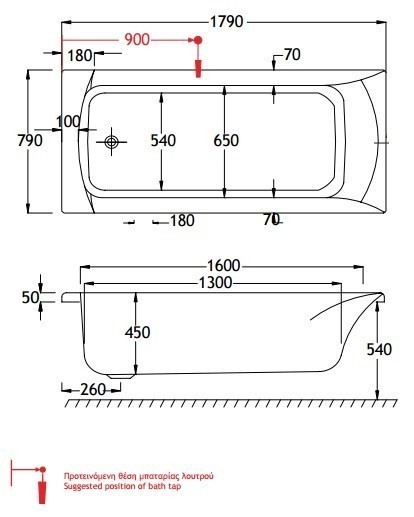 - Διατήρηση θερμοκρασίας του νερού για 30' περισσότερο από ό,τι μια τυπική ακρυλική μπανιέρα