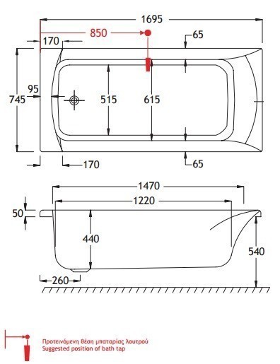 - Μπανιέρα Carronite / ενισχυμένη ακρυλική ορθογώνια 170x75