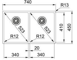 - Διαστάσεις κάθε γούρνας : 340 x 410 x 200 mm