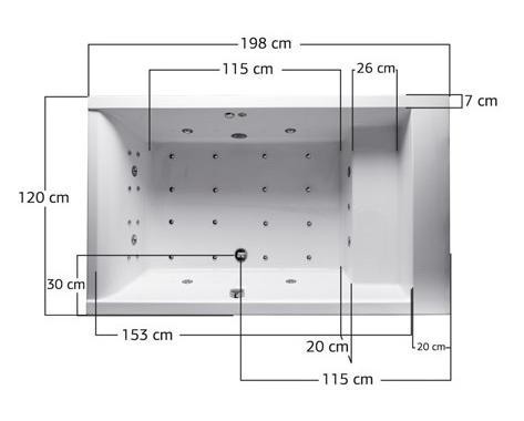 - Μπανιέρα Acrilan Lona 200x120cm με υδρομασάζ Pneumatic no2