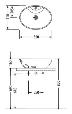 - Νιπτήρας πορσελάνης επιτραπέζιος 55x41cm,χωρίς υπερχείλιση