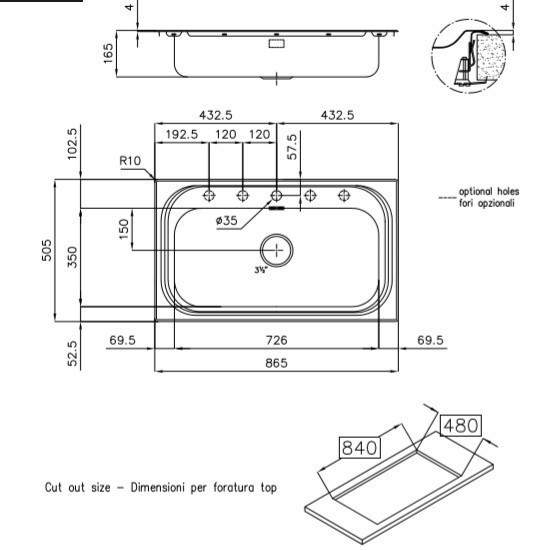 - Εσωτερικές διαστάσεις γούρνας : 72,6 x 35 cm