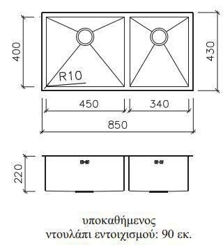 - Νεροχύτης από Ανοξείδωτο Χάλυβα (18/10) πάχους 1.2mm