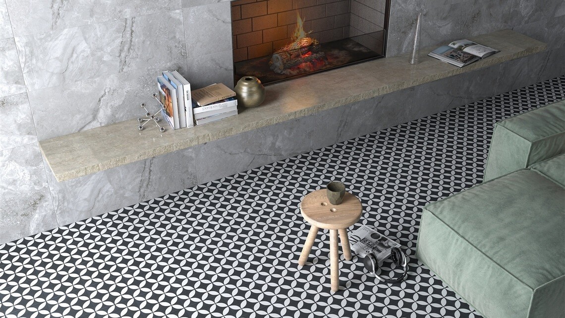 - Πλακάκι κεραμικό 20x20cm σε μοτίβο λευκό-μαύρο