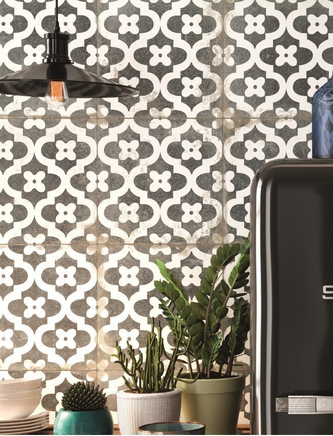 - Γρανιτοπλακάκι 33x33cm σε μοτίβο λευκό-μαύρο