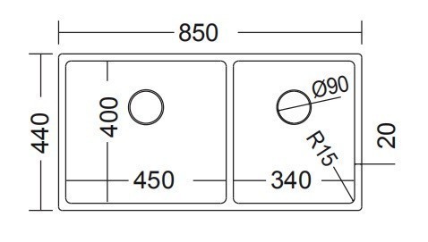 - Εσωτερικά τα τοιχώματα της γούρνας έχουν καμπυλάκι R10 για ευκολότερο καθαρισμό