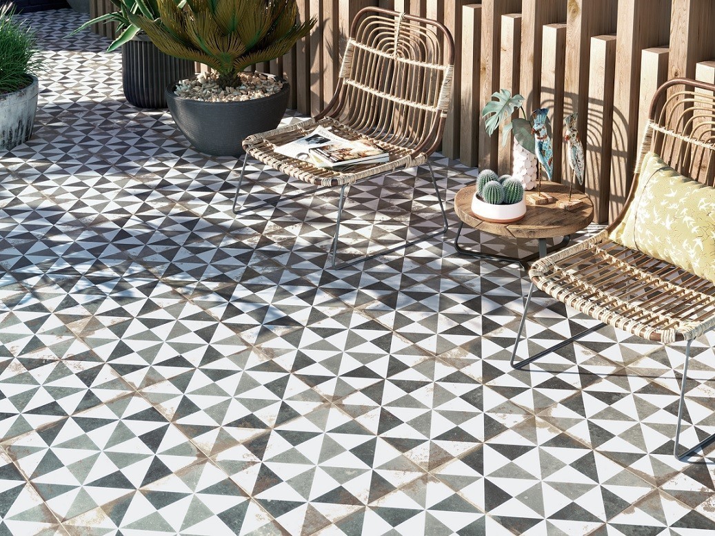 - Γρανιτοπλακάκι 33x33cm σε μοτίβο λευκό-μαύρο