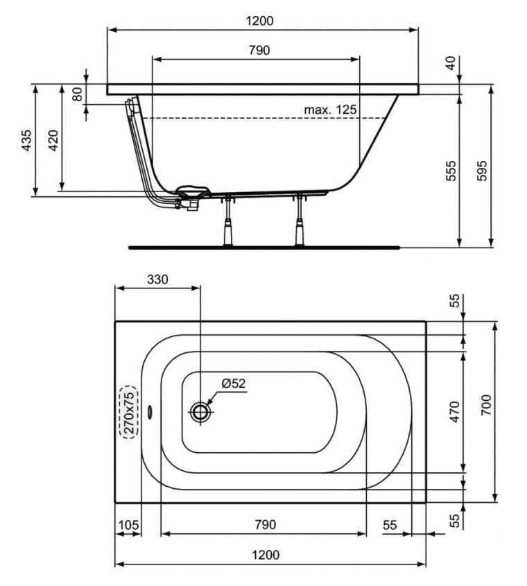- Ορθογώνια, ακρυλική μπανιέρα Simplicity 140x70cm με γωνία στήριξης