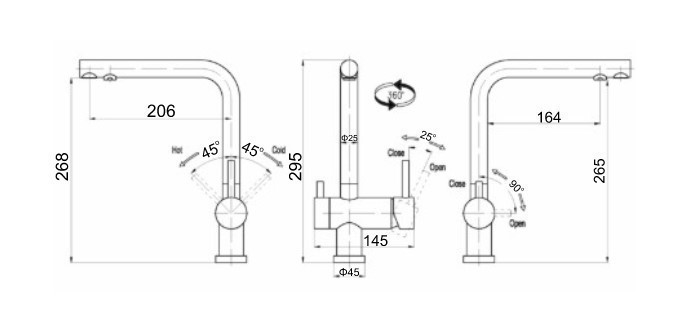 - Ύπαρξη 3 εσωτερικών διόδων : 2 για την παροχή ζεστού και κρύου νερού και 1 για φιλτραρισμένο νερό.