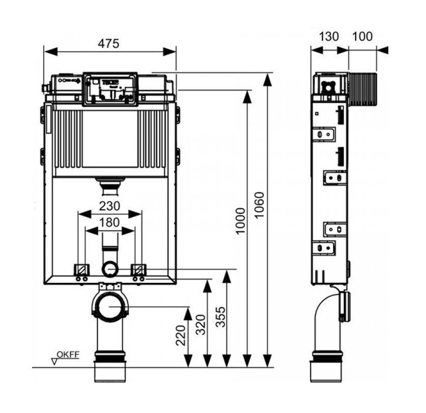 - Εντοιχιζόμενο καζανάκι Tece Box Uni W 9370300 για τοίχο διπλού τούβλου (πάχος 13εκ)
