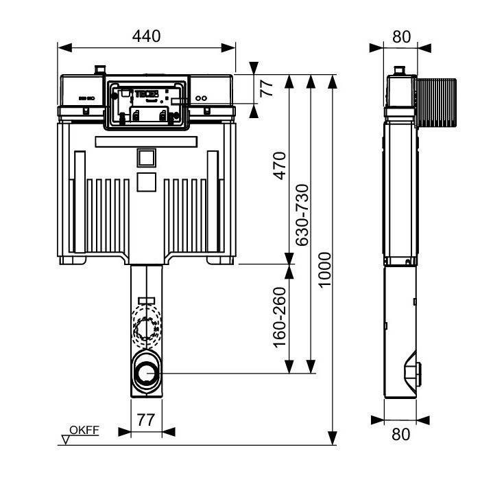 - Εντοιχιζόμενο καζανάκι Tece Octa F 9370500 για τοίχο μονού τούβλου (πάχος 8εκ)