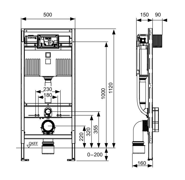 - Εντοιχιζόμενο καζανάκι Tece Profil Uni W 9300300 για γυψοσανίδα πάχους