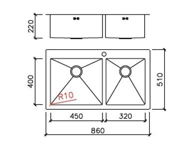 - Εσωτερικά οι γούρνες έχουν μικρή καμπύλη R10 για ευκολότερο καθαρισμό