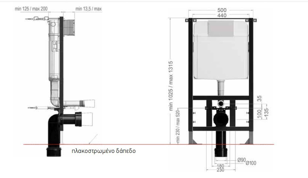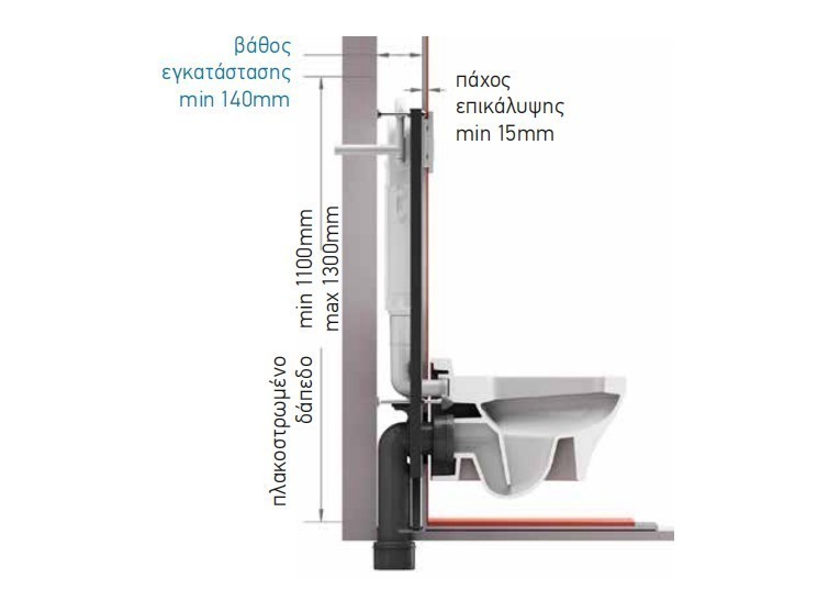 - Για εντοιχισμό σε γυψοσανίδα με βάθος εγκατάστασης minimum 140mm.Το minimum πάχος επικάλυψης να είναι 15mm.