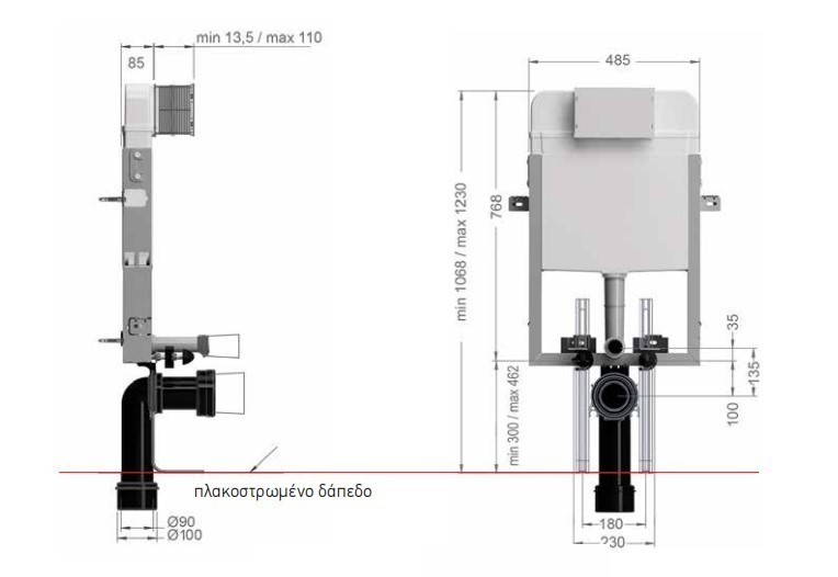 - Περιέχει συστολή αποχέτευσης 90/100mm.
