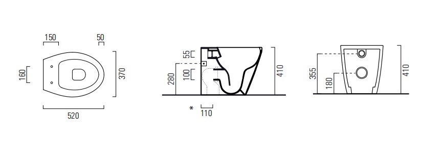 - Λεκάνη δαπέδου ΥΠ/ΟΑ εφαπτόμενη στον τοίχο που έχει το επανασταστικό σύστημα έκπλυσης SwirlFlush με τη δημιουργία υδροστρόβιλου