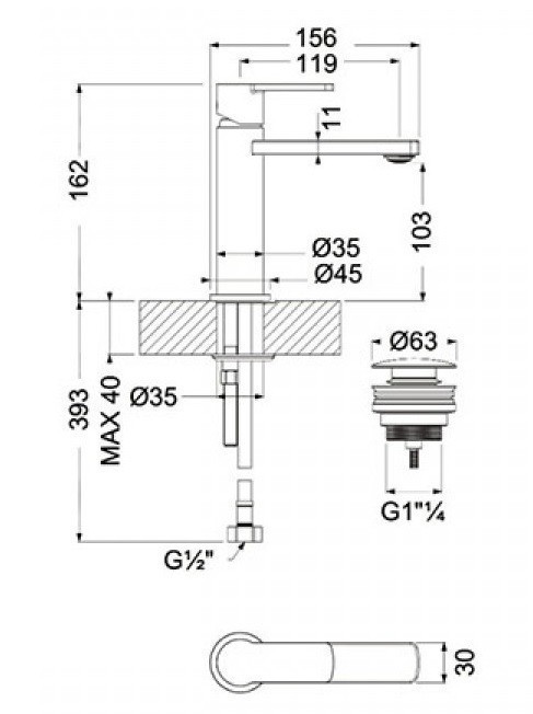 - Αναμικτική μπαταρία νιπτήρος με βαλβίδα clic-clac,μαύρο ματ