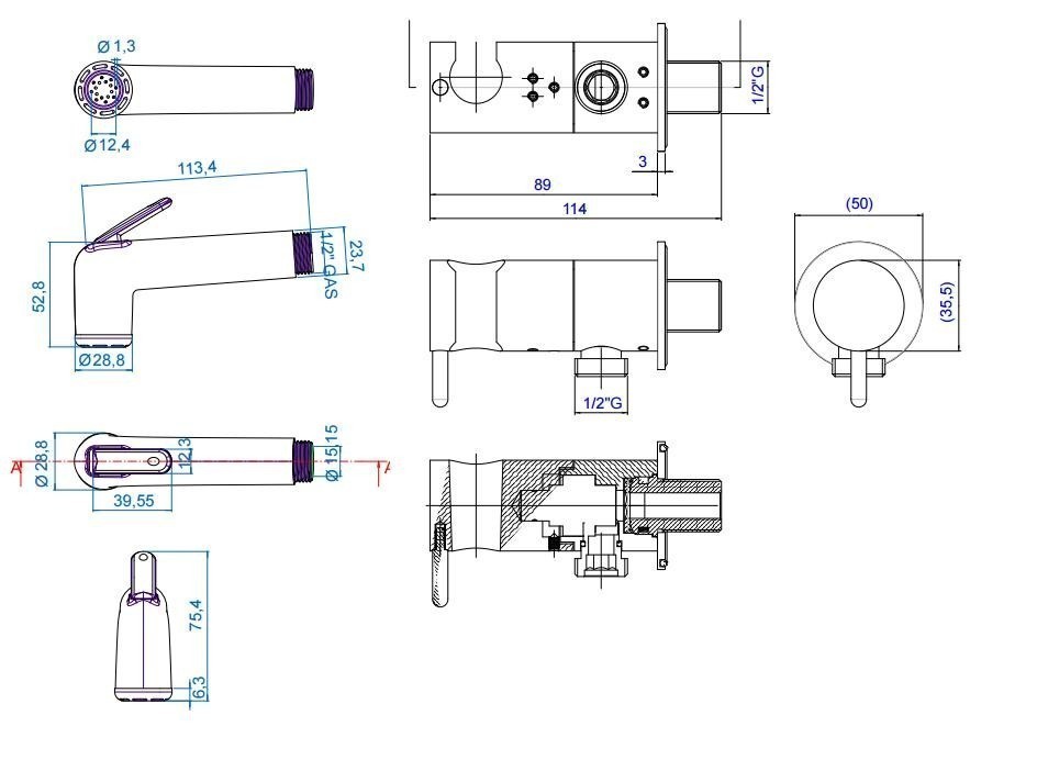 - Ντουζάκι shut-off, για πλύση ατομικής υγιεινής ή πλύση λεκάνης wc
