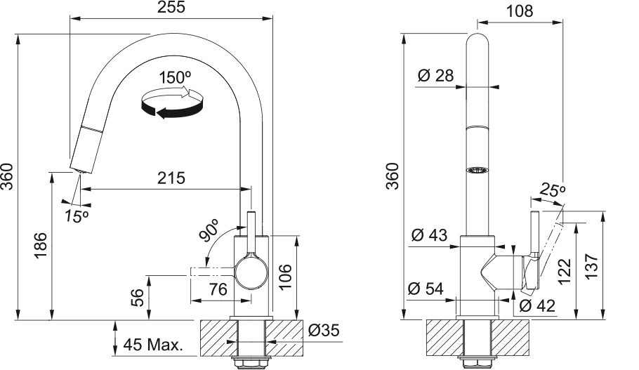 • Αποσπώμενο και περιστρεφόμενο ρουξούνι 150°
