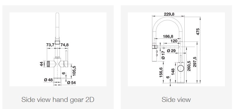 - Χωριστά πόμολα : δεξί για κρύο-ζεστό νερό,αριστερό για φιλτραρισμένο νερό