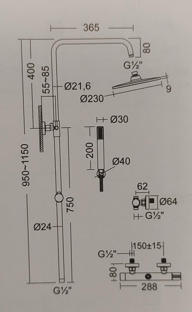 - Στήλη ντους-λουτρού χρωμέ 3 εξόδων (κεφαλή-τφ χειρός-κάτω στόμιο που βρίσκεται στην αριστερή πλευρά του κορμού)