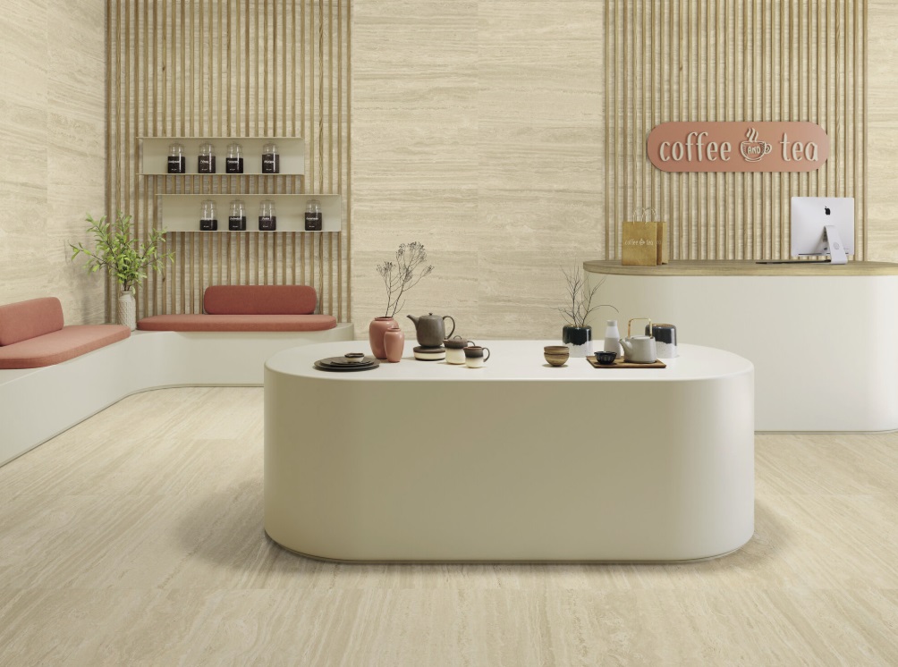 • Τα πλακάκια είναι κυλιόμενου χρωματισμού όπως και το φυσικό πέτρωμα (travertino)