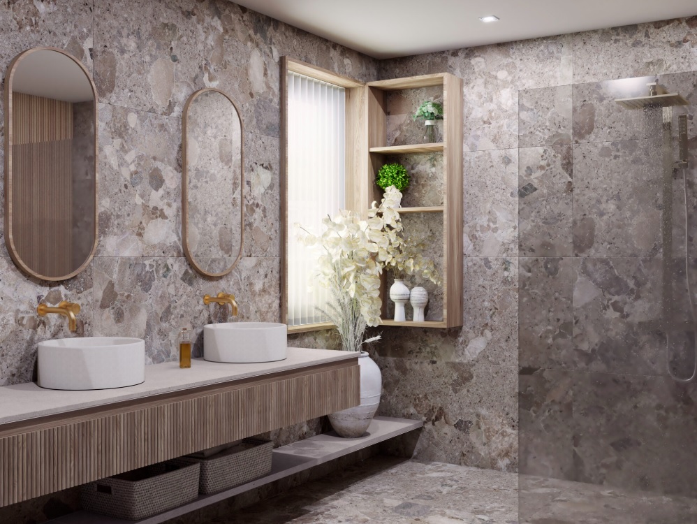 • Γρανιτοπλακάκι μπάνιου μεγάλης διάστασης ώστε να έχετε λίγους αρμούς
